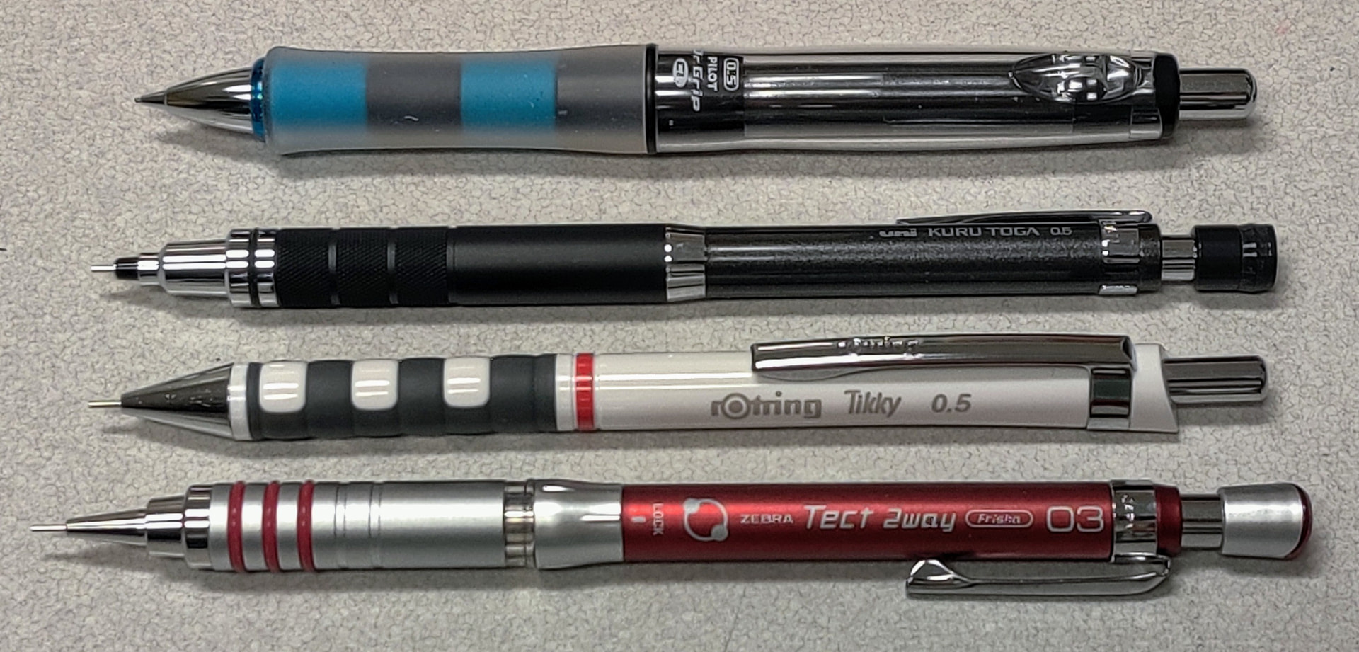 Hadn’t gotten anything new for a while so I went on a comfort buy. Really enjoying the Zebra as my daily driver at work. The Dr. Grip just showed up and I’m surprised I like it as much as I do, since I tend to prefer thinner and heavier pencils.