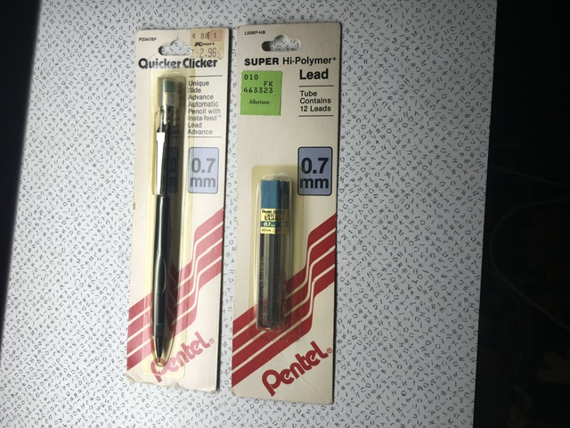 A PD347 Solid Blue Clicker for $2.96 @ Kmart (clear plastic has yellowed, so hard to see the color from the pic). Original green eraser looks well preserved too!