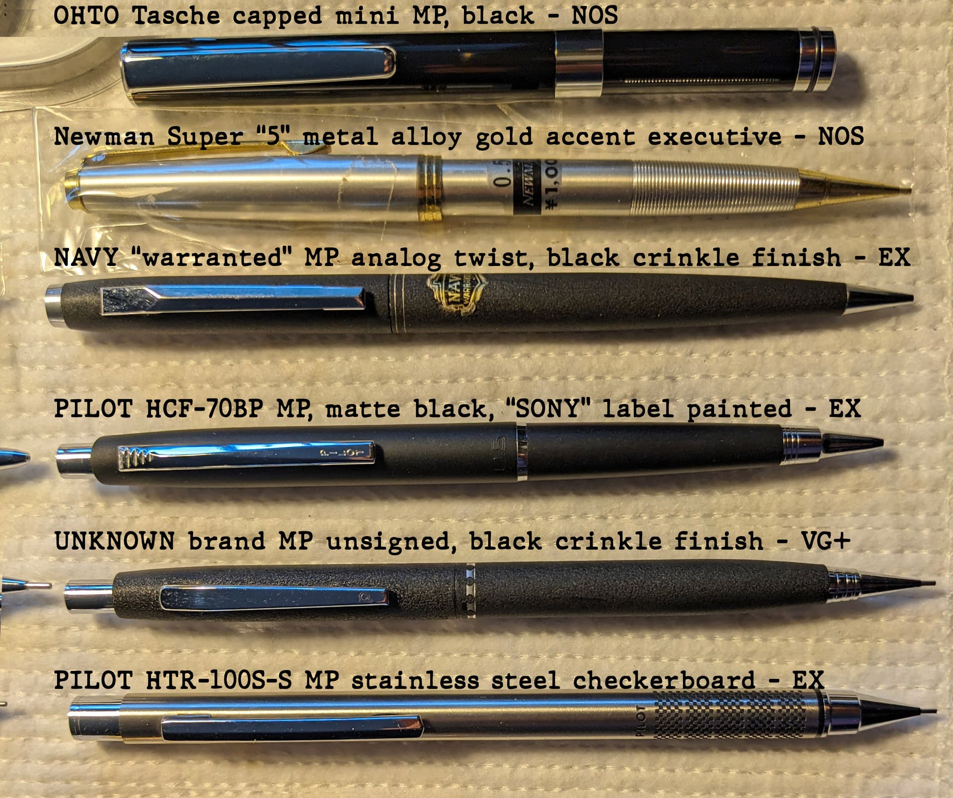 Iâd like to call dibs on the Ohto Tasche, the Pilot 5000Y 0.5, and is that a Pentel Ceramicron pencil??