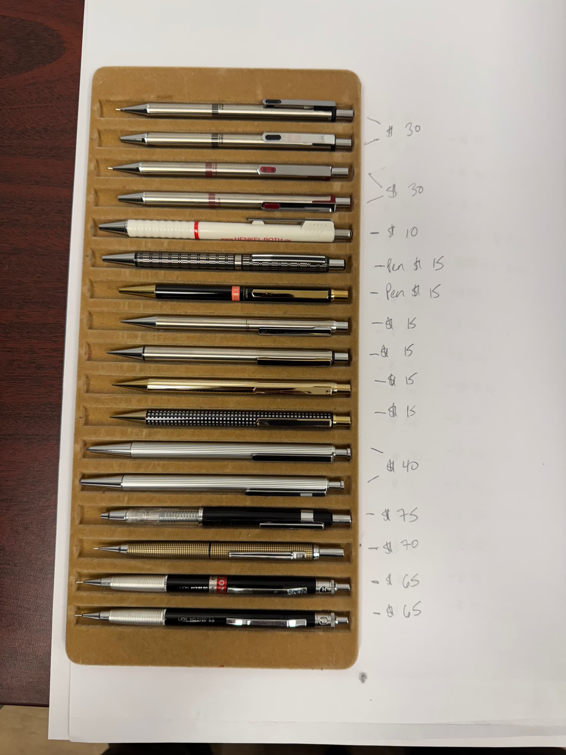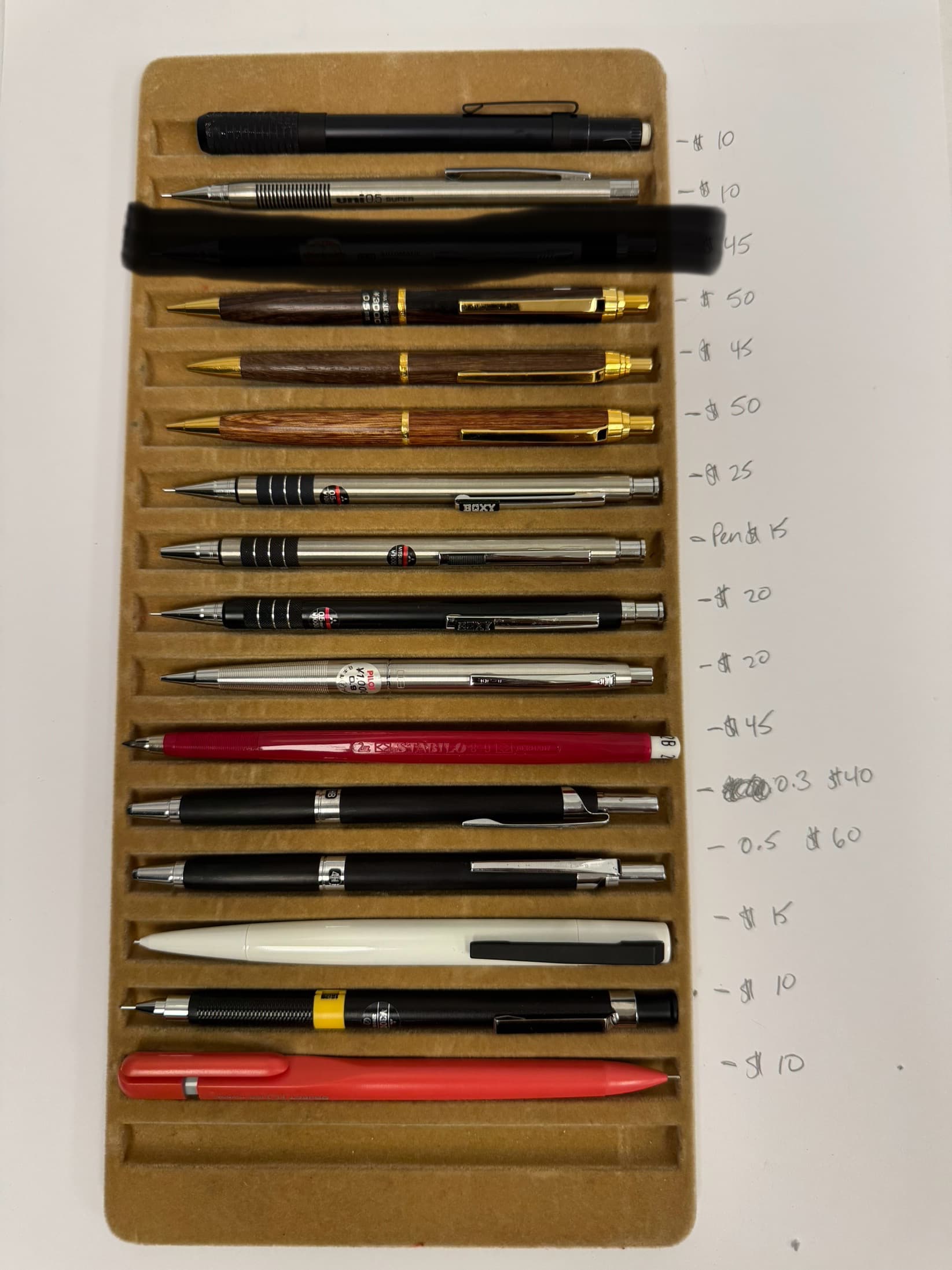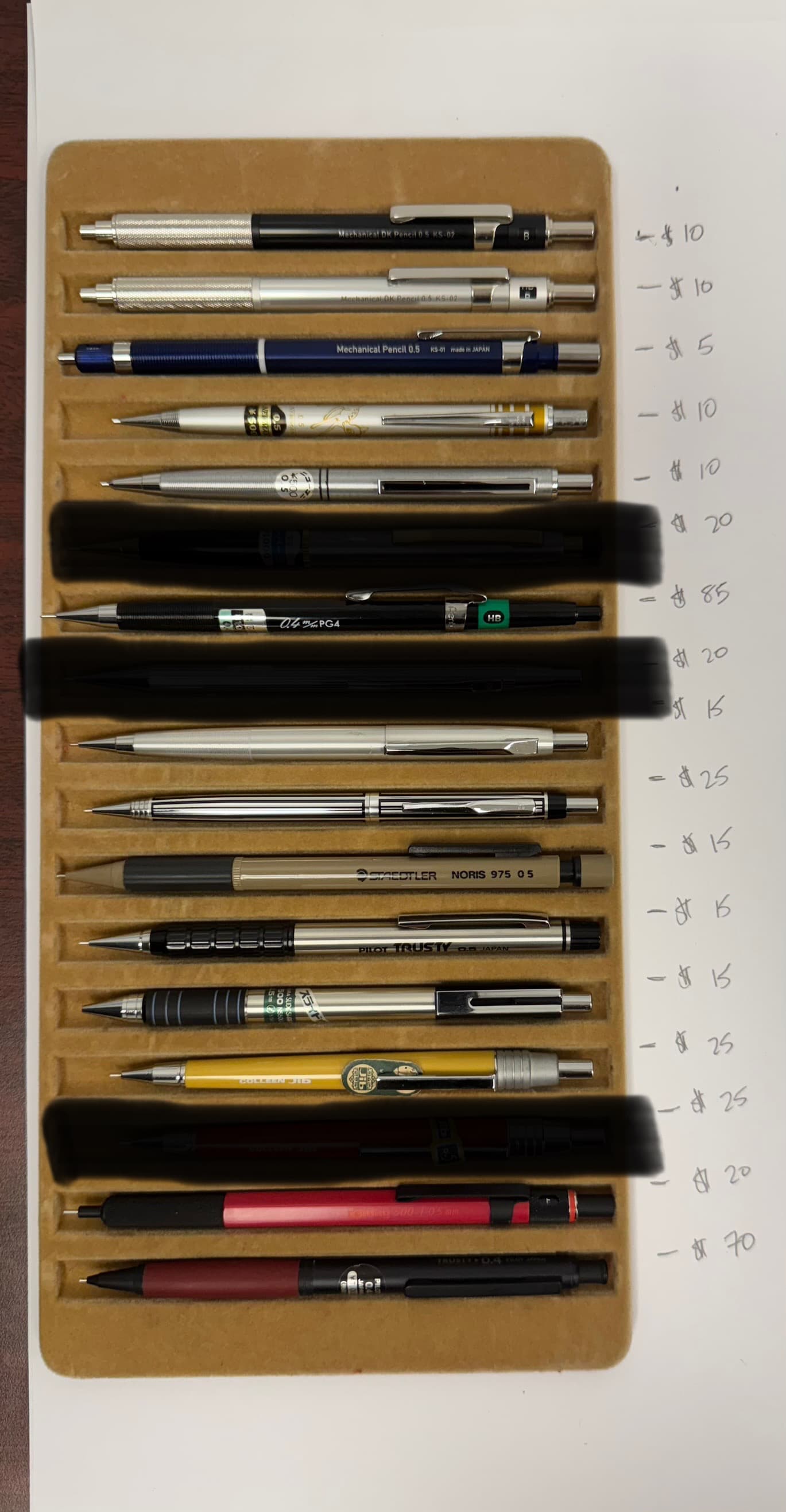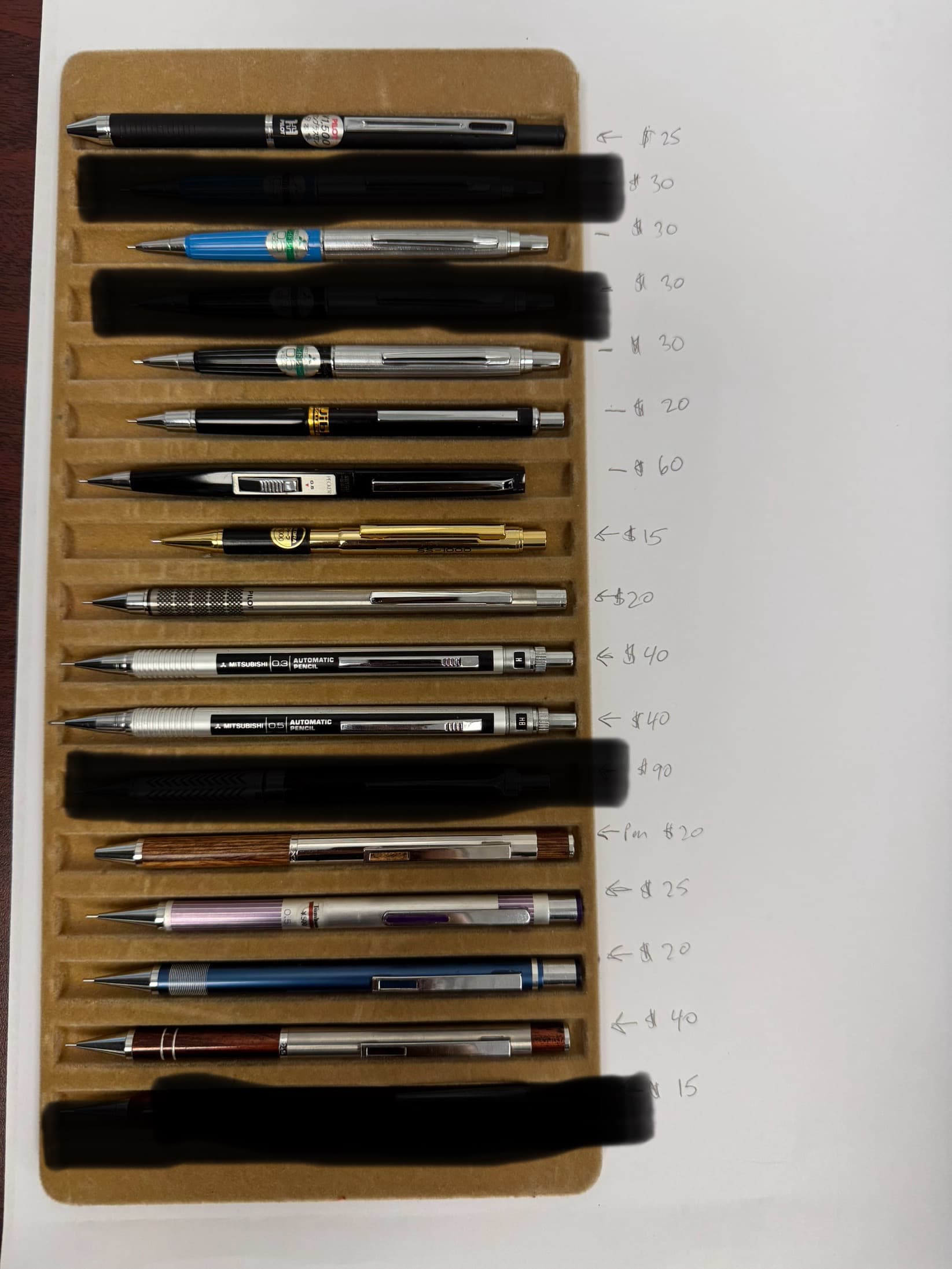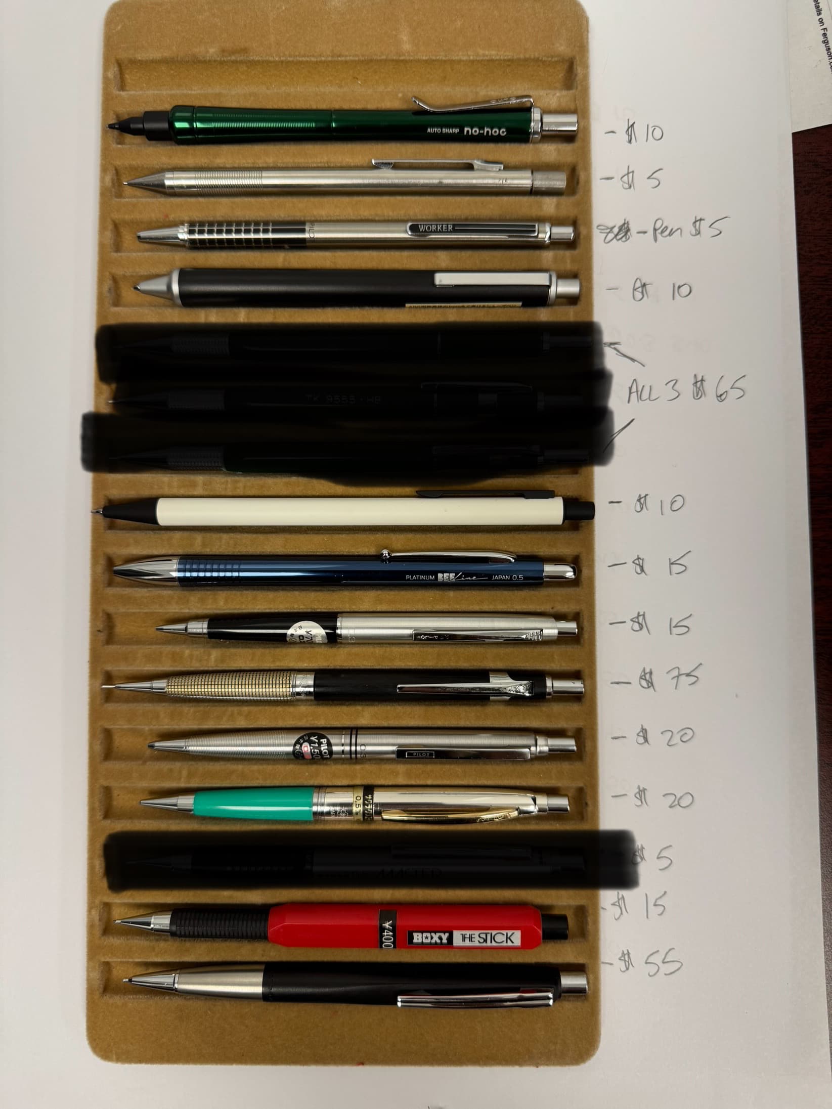 I am also interested in the kt roulette, the pentel 1505, the black and cyan automatc near the bottom, the second third and fourth, and dyson pencil in the fourth image, the first and second mitsubishis in the sixth image. though I cannot affoard them all, would you be so kind as to provide me with the pricing / availability for those?