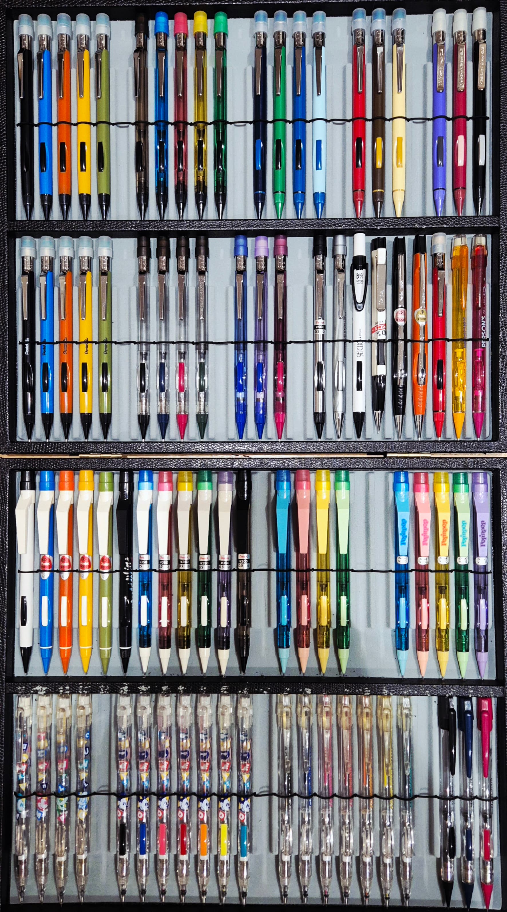My father was an engineer and he had a few 1970’s-1980’s Japanese mechanical pencils (his work had him travel to Japan regularly so he may have bought them there). I found them fascinating, they were mostly executive-style (I never saw a knurled grip in his hands) while I had to make do with a Pentel PG309 and a Conté Criterium (not bad at all, but that wasn’t my thinking at the time). Unfortunately there was a (decades-long) eclipse in my passion for MPs, during which they all disappeared…